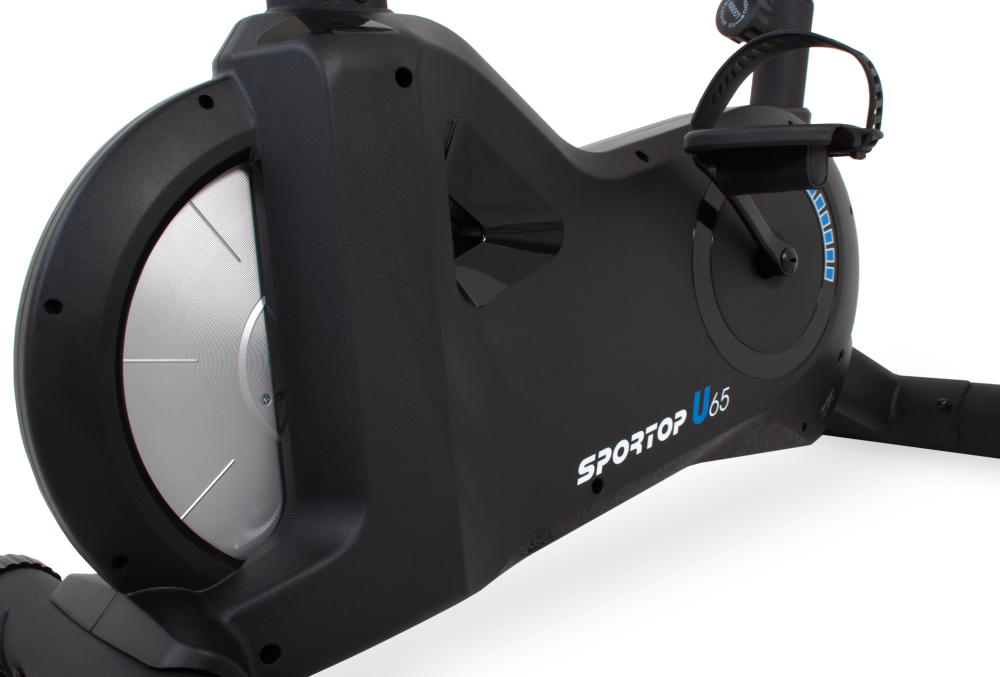 Le Sportop U65 allie le confort d'un vélo d'appartement avec la résistance de bédale d'un vélo d'appartement. Il est aussi équipé d'un volant en acier lourd de 9kg